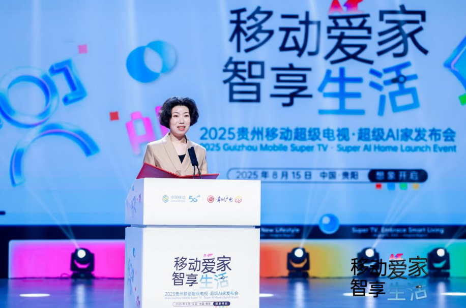 贵州移动党委书记、董事长、总经理张丽表示:“贵州移动以‘领域优秀 区域领先’的新定位,致力于为‘多彩贵州添彩、为数智社会赋智’,努力服务着贵州的千家万户和千行百业。今年,中国移动推出了三大回馈计划,从用户实际需求出发,用权益与服务传递着对‘家’与‘用户’的关爱。其中,移动爱家计划作为最贴近民生、最聚焦家庭的重要举措,承载着用数智技术升级家庭生活的初心。‘超级电视·超级AI家’产品正是移动爱家计划的关键落地成果,跨越传统电视的边界,将便捷与温暖融入电视大屏,打造贵州特色的‘超级电视’综合型服务生态。”