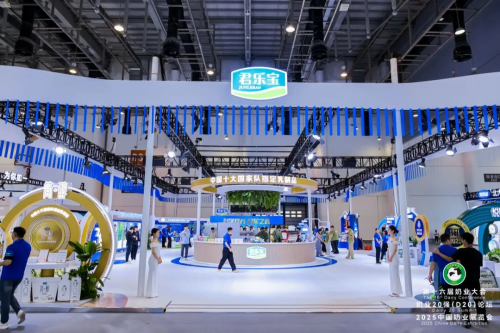 君乐宝的创新实力与品牌魅力在展览现场得到充分彰显。以“科学营养,冠军之选”为主题的蓝金色展区,生动诠释了其“科技赋能品质、创新塑造品牌”的核心成果:全国销量第一的简醇低温酸奶推出1000亿活菌新配方,重新定义肠道健康标准;高端鲜奶销冠悦鲜活,应用INF0.09秒超瞬时杀菌技术,最大化保留活性营养;君乐宝奶粉则展示全球首创“脑体双优”配方有机奶粉,富含65种营养素。产业链协同亮点同样突出,君秾饲料与品元生物展示育种科技硬实力,银桥乳业以盛唐文化赋能创新,来思尔酸奶呈现特色融合魅力。