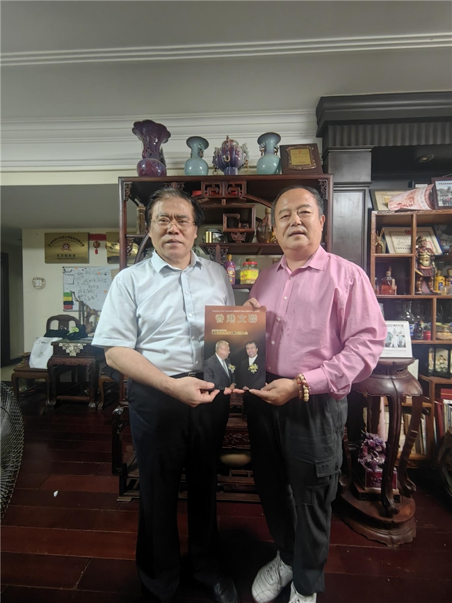 香港文联主席张孝勇向军旅书法家李成栋赠送香港文联杂志