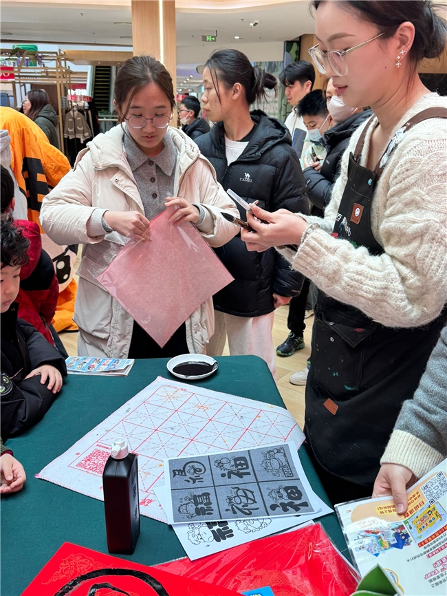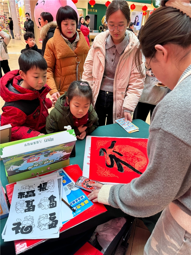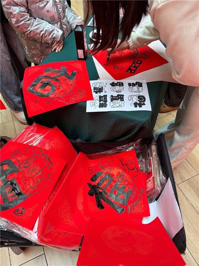 结合春节传统节日,团队开展“写春联、送祝福”文化推广活动。在文化服务中心设立“春联书写体验区”,通过讲解春联寓意、“福”字文化内涵,引导儿童与村民参与传统文化体验。活动累计服务村民200余人,发放春联及福字作品150余份。许多家长表示,孩子在参与活动过程中对传统节日有了更加直观的理解。